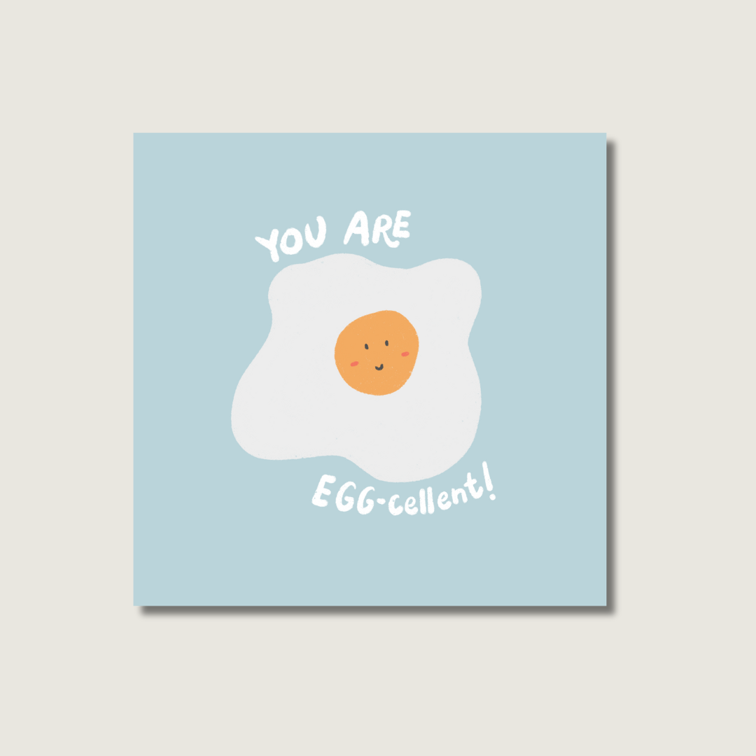 Reasons to love this: A fun, cute egg illustration with a quirky "you are eggcellent" quote. Whether displayed on your desk as an art print, added to a mood board, or gifted to someone you care about as a postcard, it's totally up to you! Printed on premium shimmering paper, making it a beautiful and meaningful addition in your space.